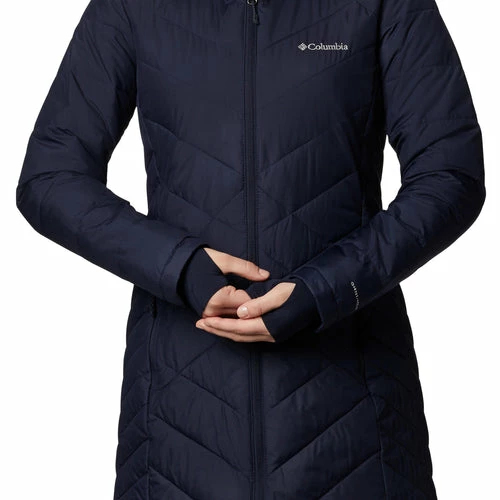 Heavenly warmth in a sleek, long, and lightweight jacket thatβll keep you cozy on the move. The womenβs Heavenly Long Hooded Jacket combines a light yet toasty synthetic down insulation and a thermal-reflective lining for bonus warmth without the bulk. The shell fabric resists wet weather, while a flattering, longer cut and comfort cuffs with thumbholes provide crucial coverage from the chill.